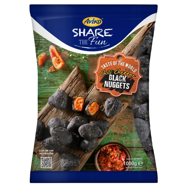 De meest opvallende kaassnack op aarde. Je trekt gegarandeerd de aandacht als je deze Chili Cheddar Black Nuggets met jalapeno peper op jouw menukaart zet. Pikante kaashapjes met een zwarte tempura coating.