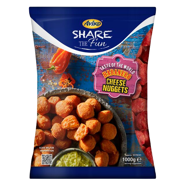 Zijn de Chili Cheddar Cheese Nuggets nog niet pittig genoeg? Probeer dan onze Habanero Cheese Nuggets. Zacht gesmolten kaas met een vleugje hete habanero peper in een knapperige korst.