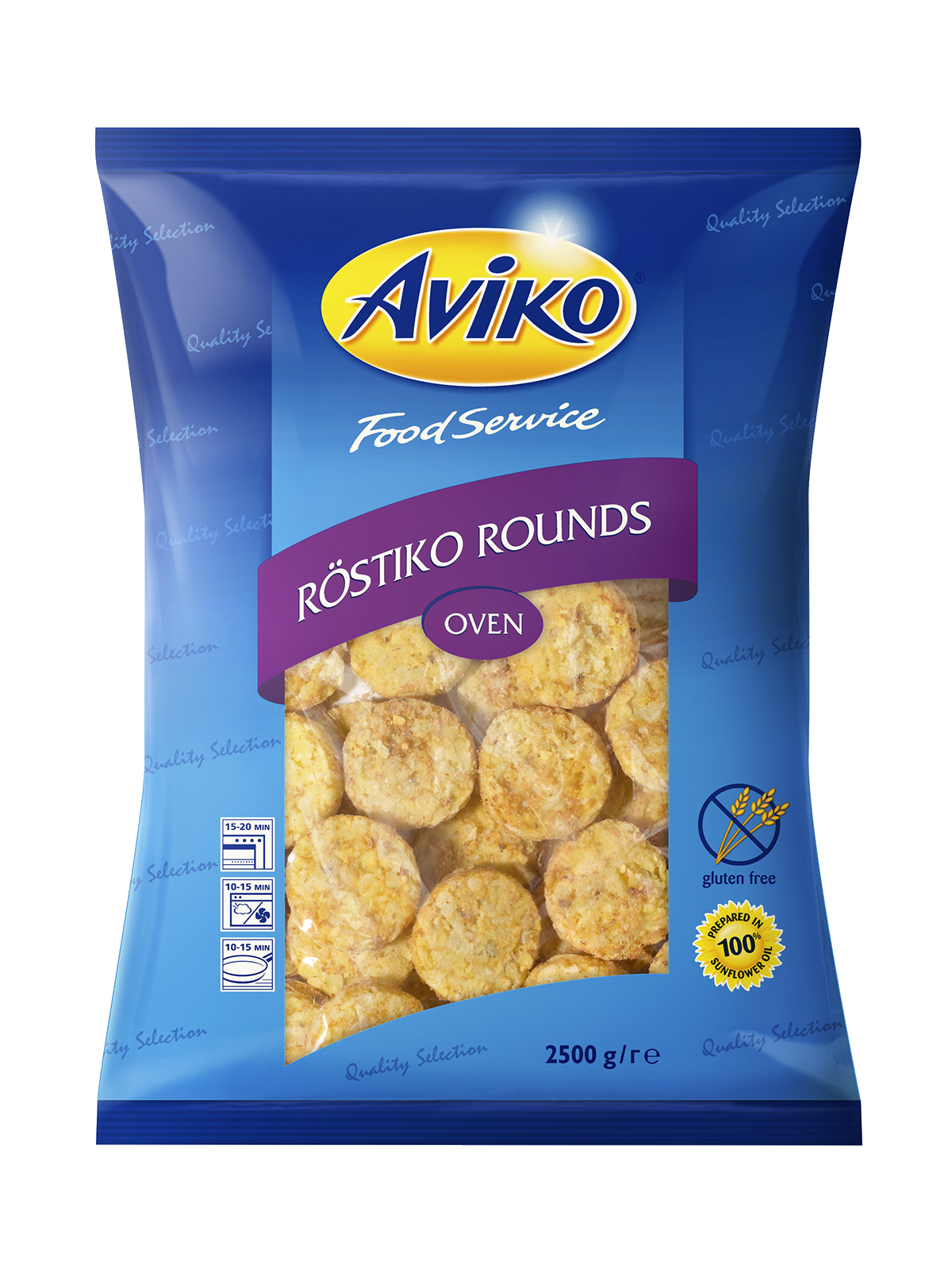 Aviko Rösti Rondjes zijn gemaakt van vers geraspte aardappel en makkelijk te bereiden in de oven, combi-steamer en koekenpan.
