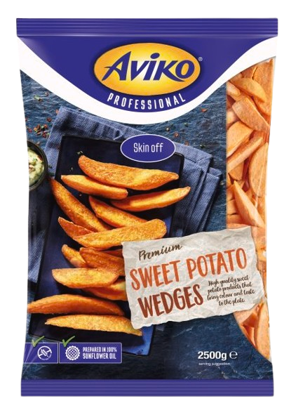 Aviko Zoete aardappelpartjes zijn diepgevroren met een opvallende oranje kleur en een uniform formaat. Deze wedges zijn eenvoudig te bereiden in een friteuse of oven.